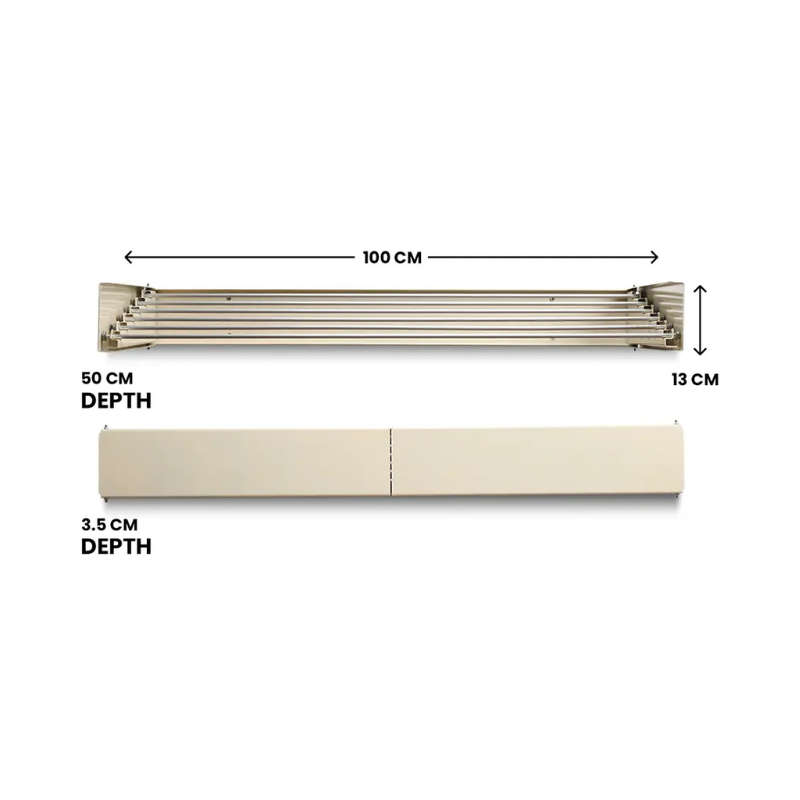 بيتفتح ويتقفل بسهولة، عملي جداً وموفر للمساحة، خصوصًا في البلكونات الضيقة. شكله شيك ومتين، ومثالي لنشر الغسيل من غير ما ياخد مكان كبير.